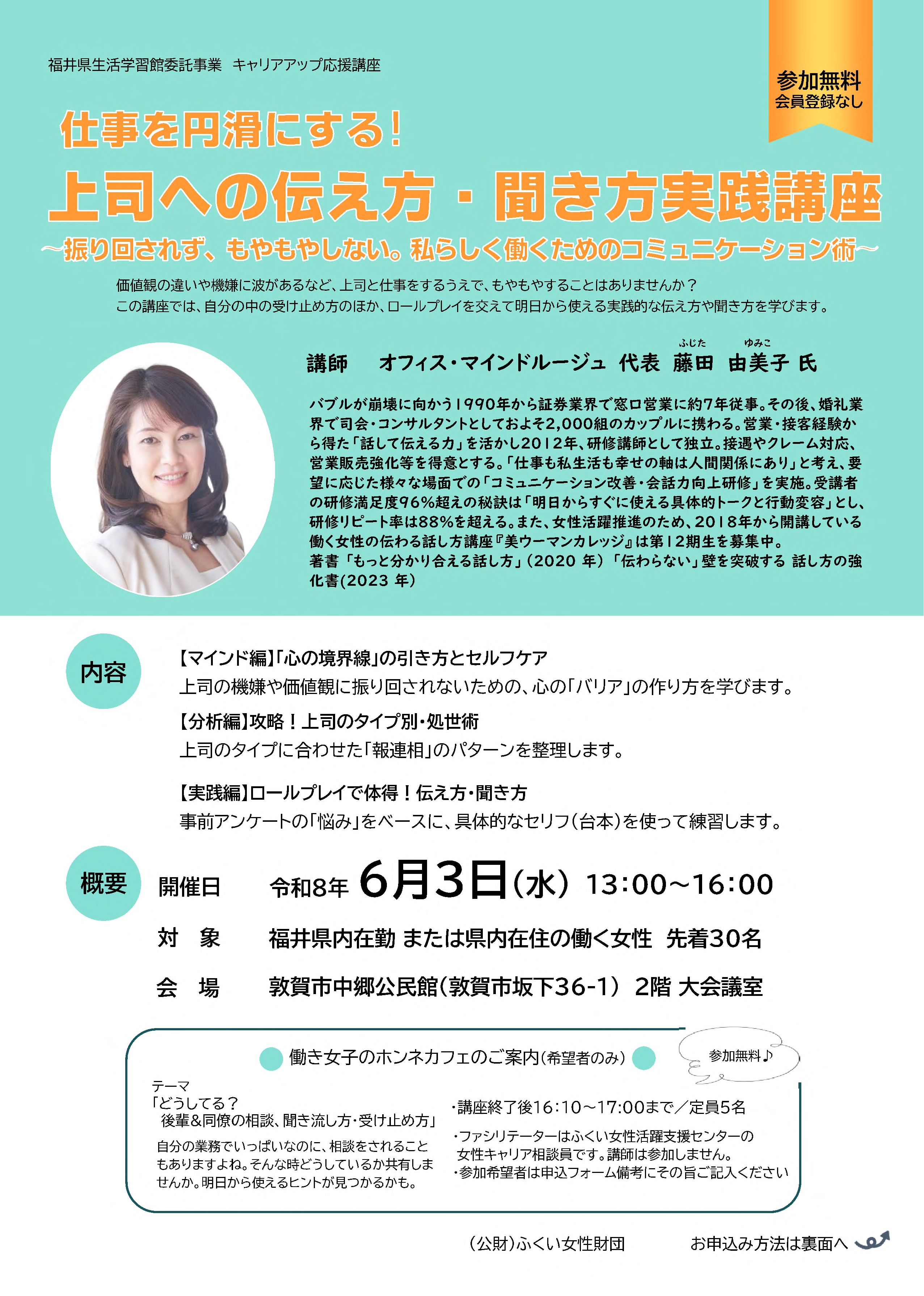 ふくい女性財団は男女共同参画社会の実現をめざし、