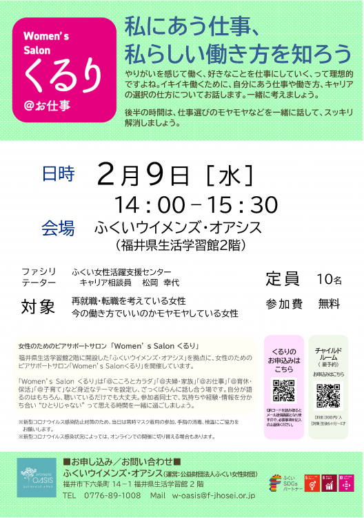 私にあう仕事、 私らしい働き方を知ろう~Women’s Salonくるり@お仕事