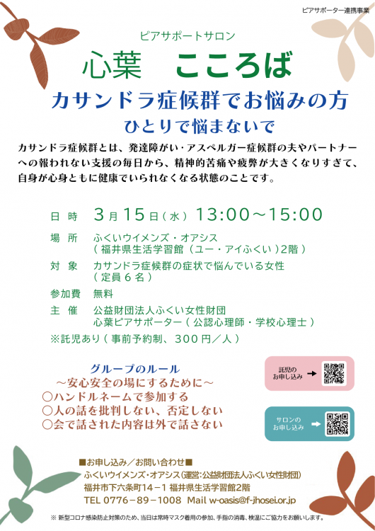 ピアサポートサロン心葉(こころば) ~カサンドラ症候群でお悩みの方、ひとりで悩まないで~