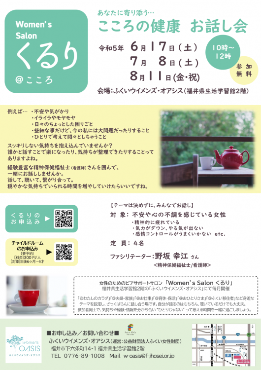 あなたに寄り添う…「こころの健康」お話し会~Women’s Salonくるり@こころ~