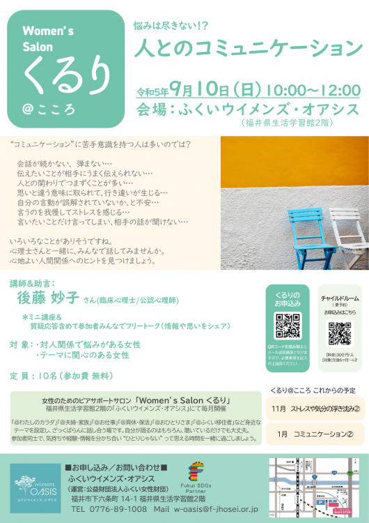 悩みは尽きない!? 人とのコミュニケーション~Women’s Salonくるり@こころ~