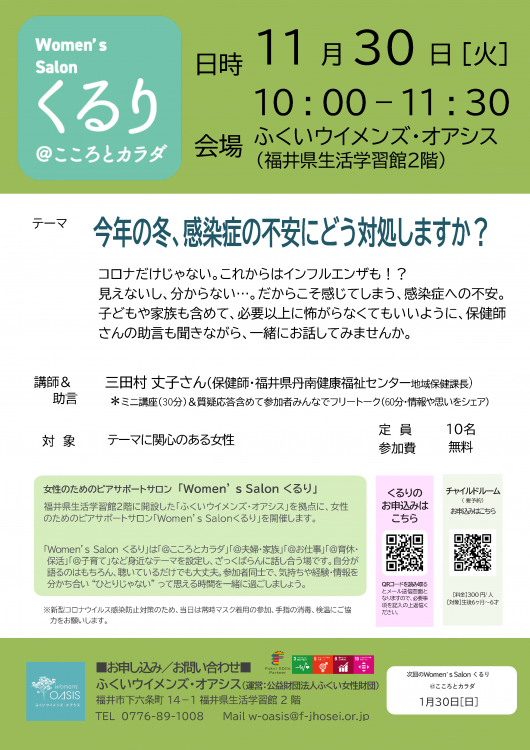 今年の冬、感染症の不安にどう対処しますか?~Women’s Salonくるり@こころとカラダ~