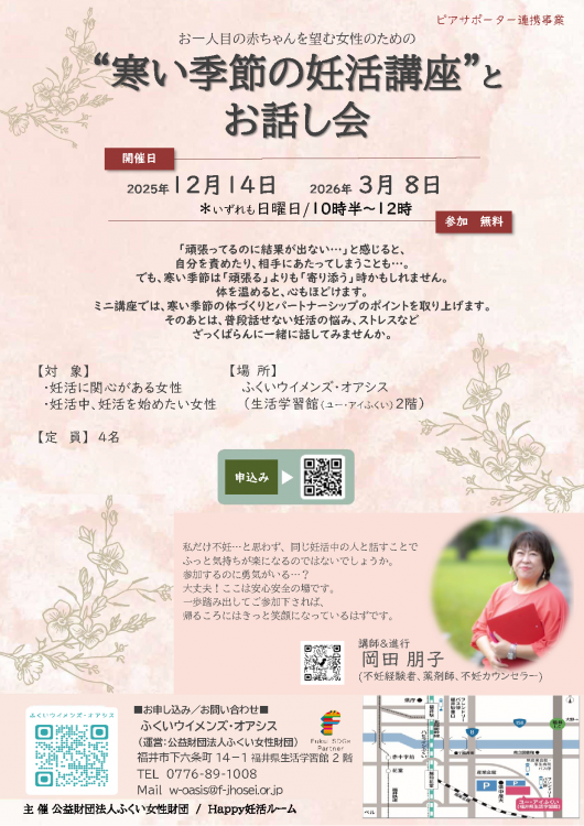 ミニ講座では、寒い季節の体づくりとパートナーシップのポイントを取り上げます。