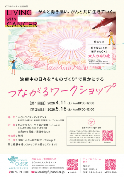 そのようなさまざまな思いや悩みを抱えた女性のための居場所が、「ふくいウイメンズ・オアシス」です。ここは、女性の居場所として、「さまざまな思いを抱えた女性が集い、気持ちや経験、情報を分かち合いながら、心の余裕を取り戻してもらう場です。