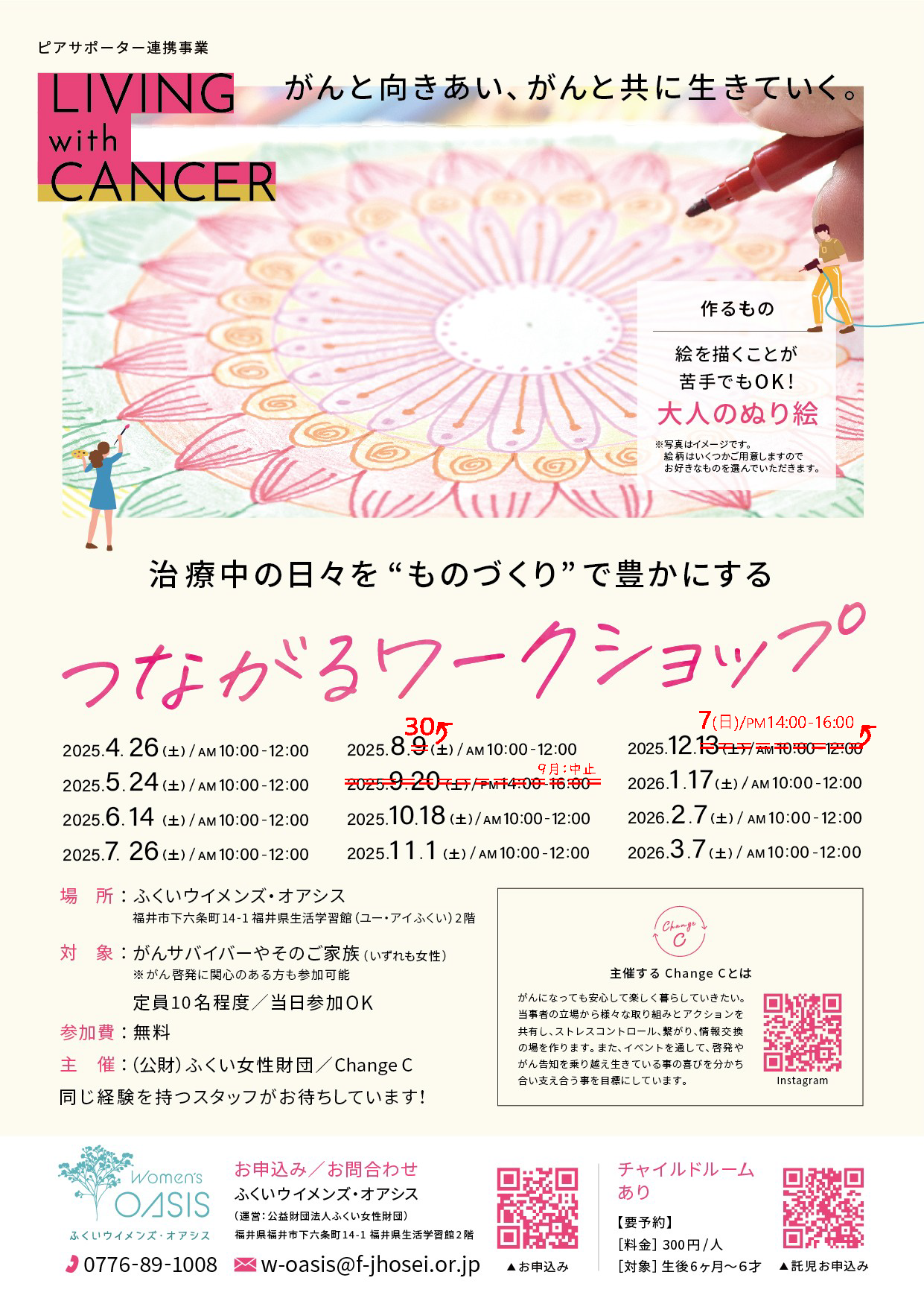 Change C がんになっても安心して楽しく暮らしていきたい。当事者の立場から様々な取り組みとアクションを共有し、ストレスコントロール、繋がり、情報交換の場を作ります。また、イベントを通して、啓発やがん告知を乗り越え生きている事の喜びを分かち合い支え合う事を目標にしています。 |