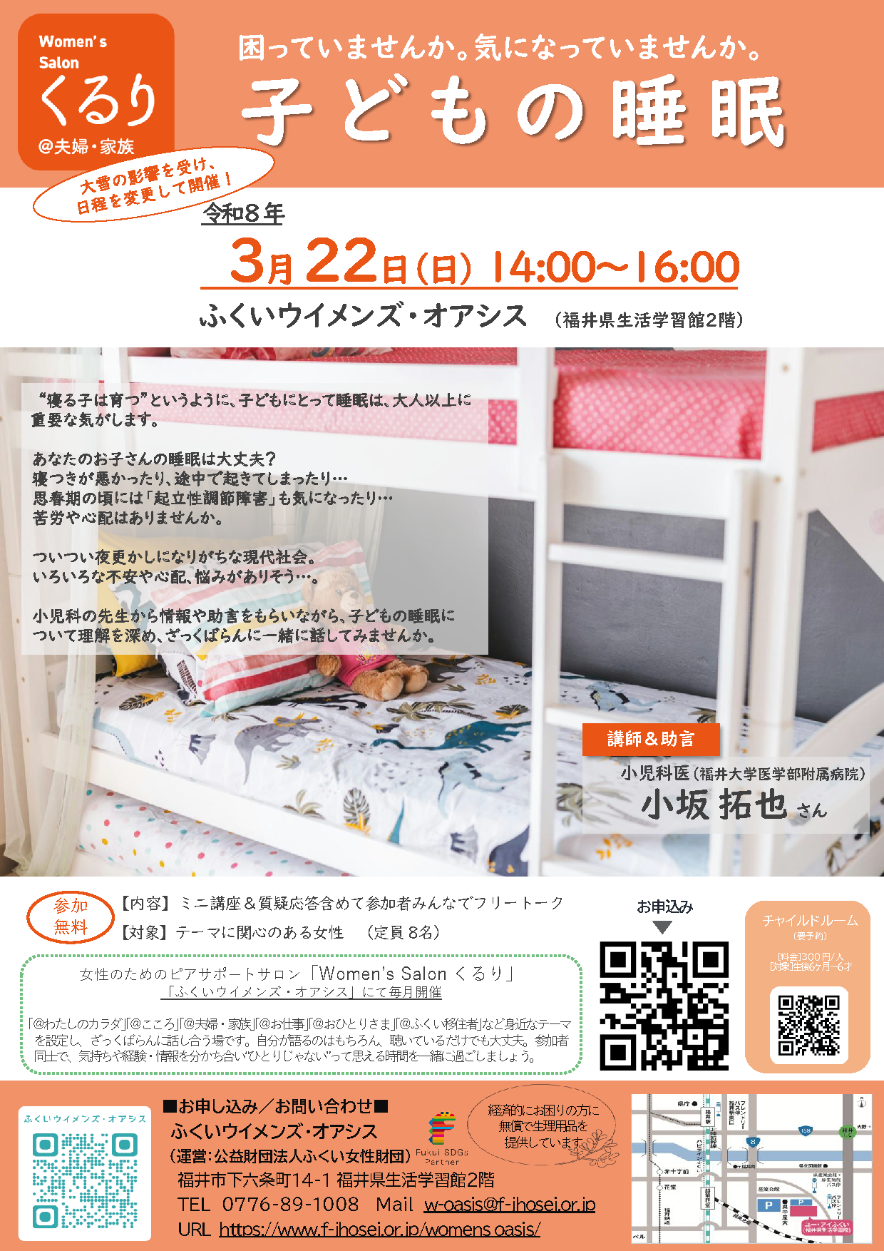 【日程変更】子どもの睡眠~Women’s Salonくるり@夫婦・家族~