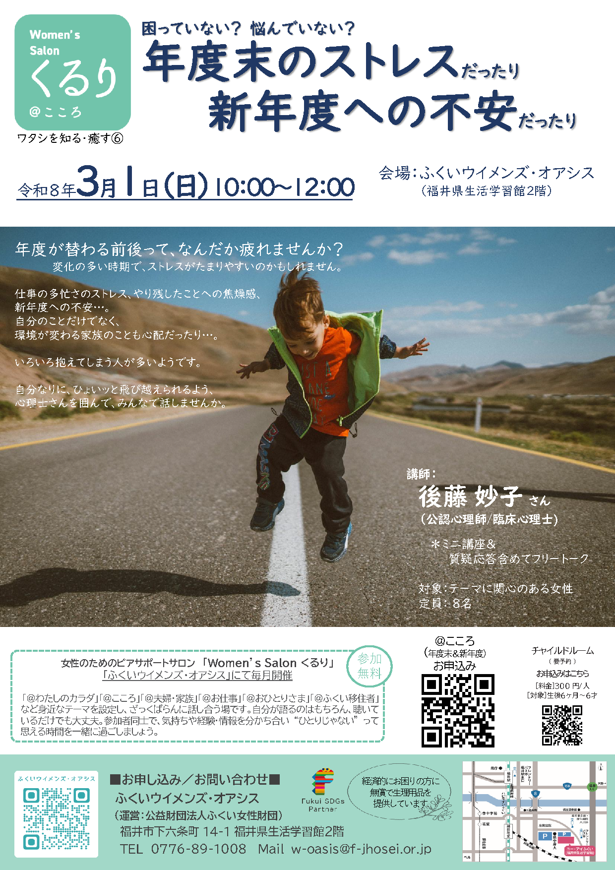 年度末のストレス、新年度への不安~Women’s Salonくるり@こころ~